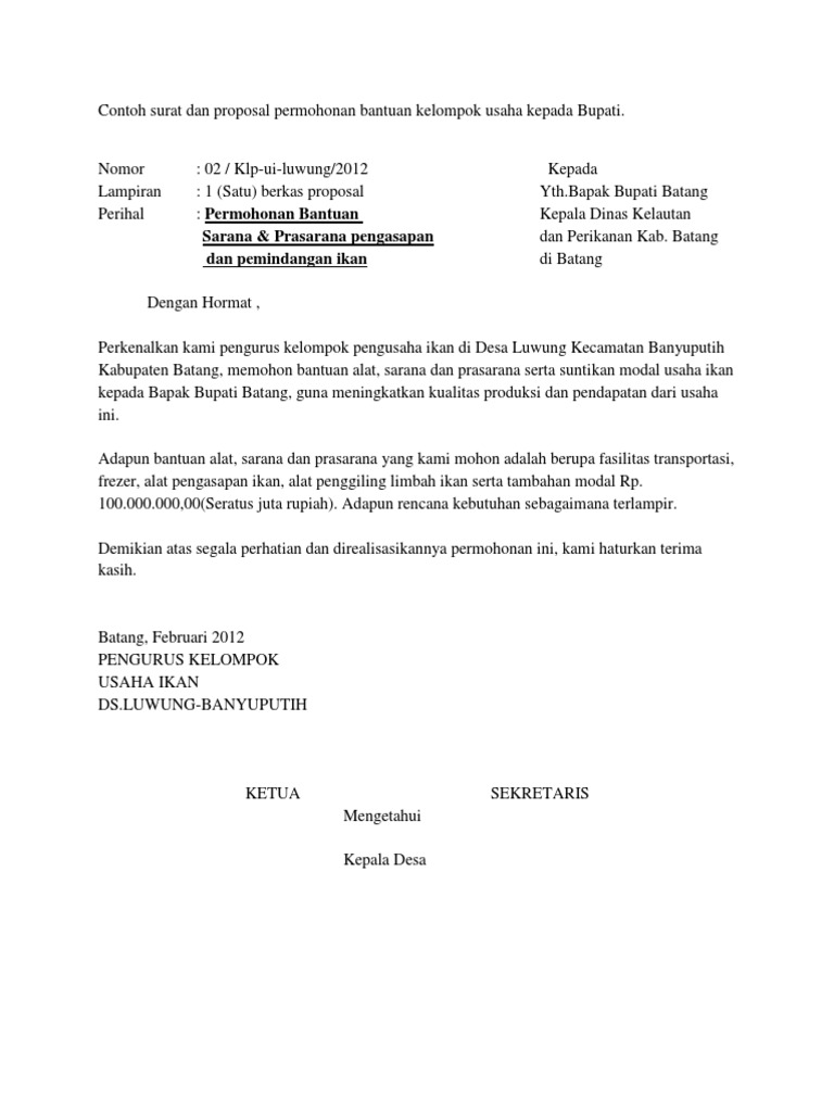 Contoh Surat Dan Proposal Permohonan Bantuan Kelompok Usaha Kepada Bupati Pdf